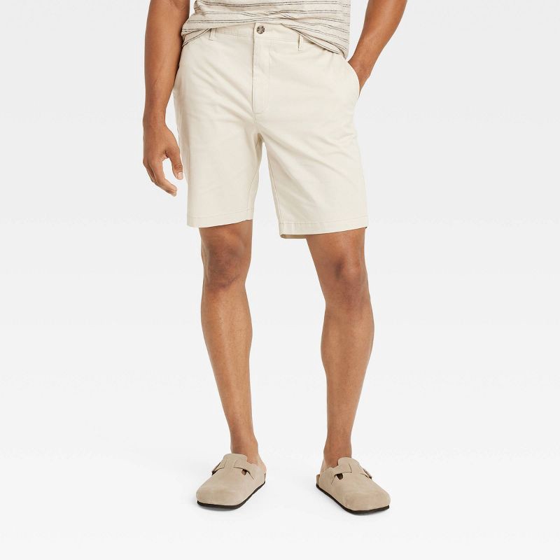 These Flat Front Chino Shorts from Goodfellow & Co™ makes the perfect pick for warm-weather outings. Crafted from soft, stretchy fabric and breathable poplin lining, the chino shorts offer you all-day…
