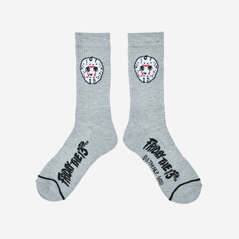 Enjoy a bold twist with these Men's Friday The 13th Crew Socks in gray. Made from a soft midweight knit blend, they're built for comfort whether you're out and about or just kicking back. The crew heiā¦