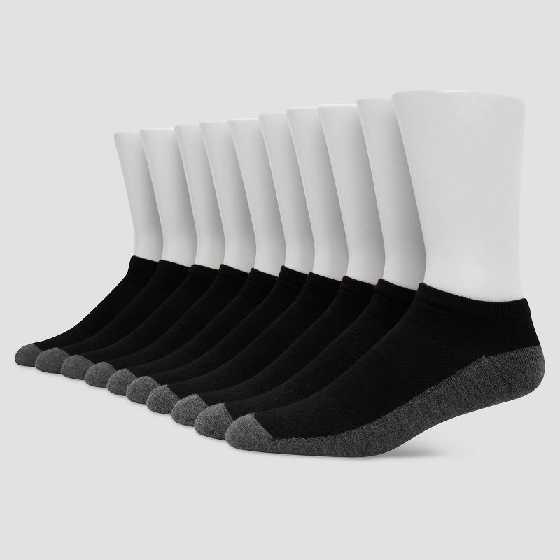 Men's Hanes Premium Low Cut Socks 10pk - Black: Moisture Wicking, Breathable, Midweight, Size 6-12