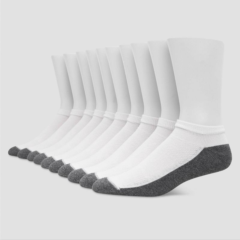 Men's Hanes Premium Low Cut Socks 10pk - White 6-12: Moisture Wicking, Breathable, Midweight, Machine Washable, Ribbed