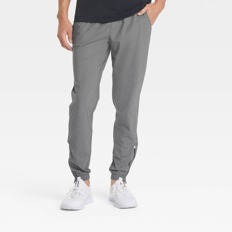 Men's Lightweight Tricot Jogger Pants - All In Motion™ Heathereded Black L: Zippered Pocket