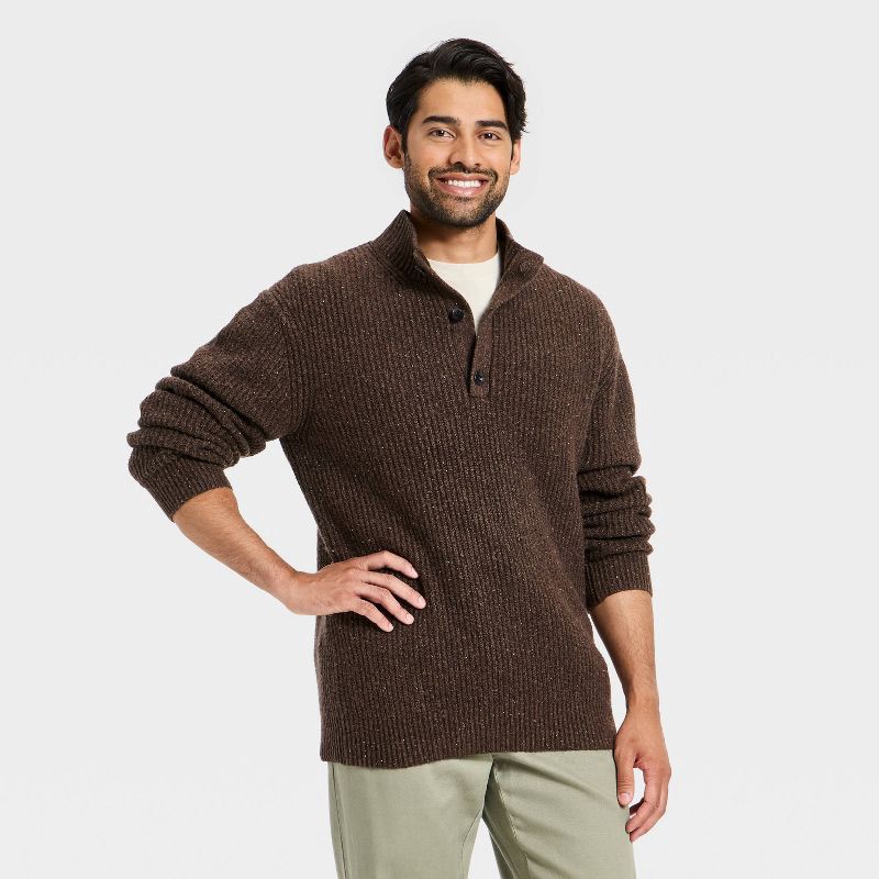 Men's Mock Neck Button Sweater - Goodfellow & Co™ Brown S