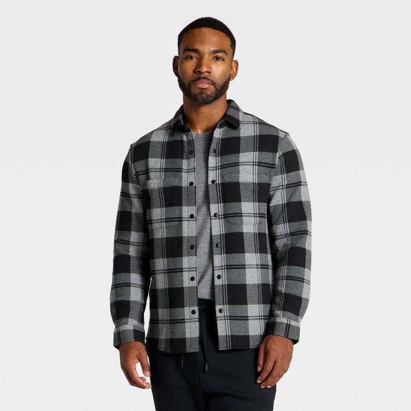 Men's Shirt Jacket - All In Motion™ Black Plaid XL