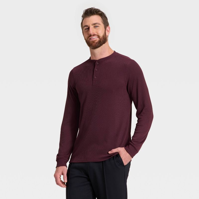 Men's Waffle Henley Shirt - All In Motion™ Burgundy M