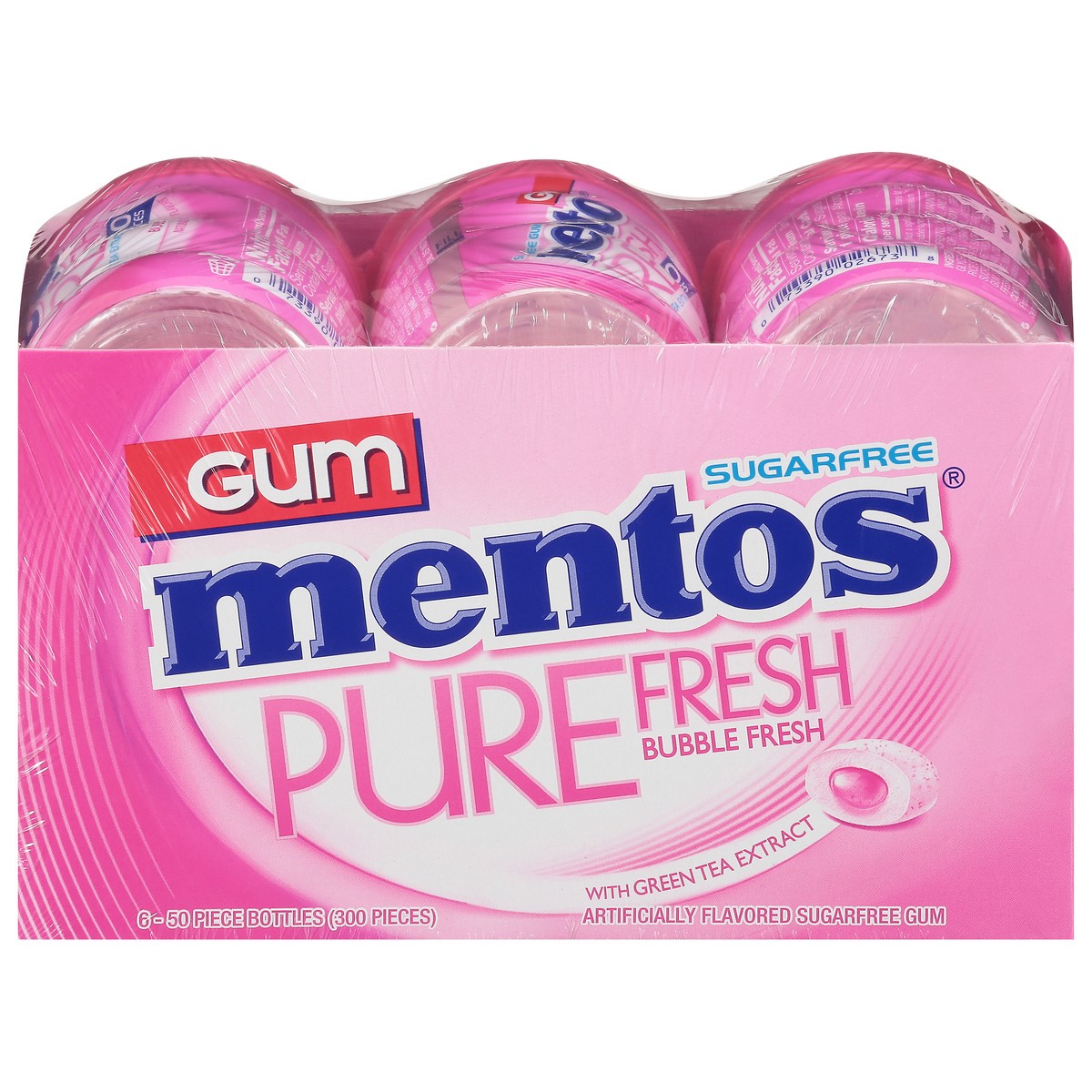 Have a fresh day with Mentos Pure Fresh Sugar-Free Gum! Each piece of Bubble Fresh lavored sugar-free chewing gum delivers a blast of bubblegum flavor that lasts chew after chew. Sweetened with xylito…