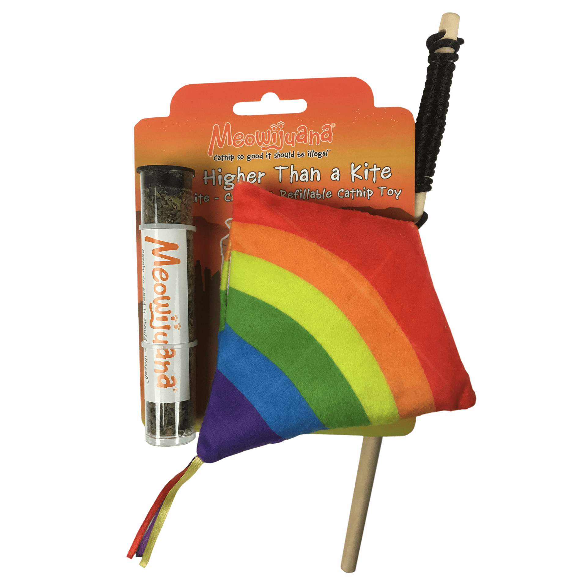 Meowijuana Get Higher than a Kite Refillable Toy - Break out this kite and watch your cat fly high! Add our pawsome all-natural catnip into this multi-colored kite ensuring, your kitty will be floatin…