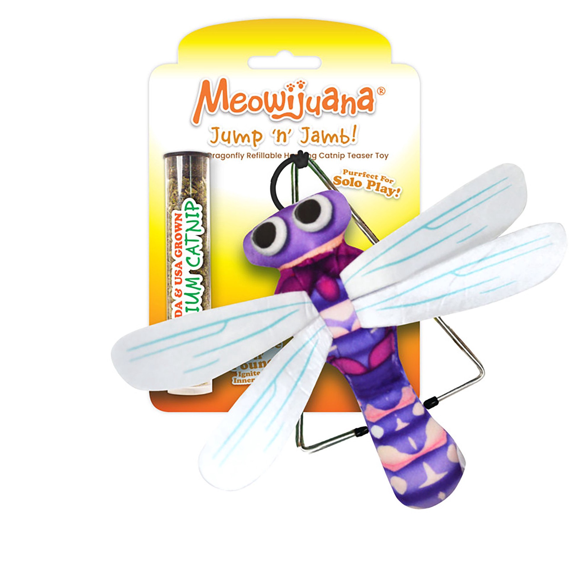 slide 1 of 1, Meowijuana® Jump 'n' Jamb Flashy Dragonfly Refillable Catnip Swinging Teaser Cat Toy, 1 ct