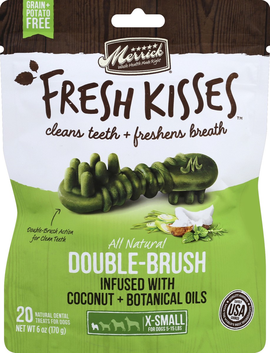 20 natural dental treats for dogs. All natural double-brush infused with coconut + botanical oils. Grain + potato free. Whole health made right. Cleans teeth + freshens breath. Double brush action for…