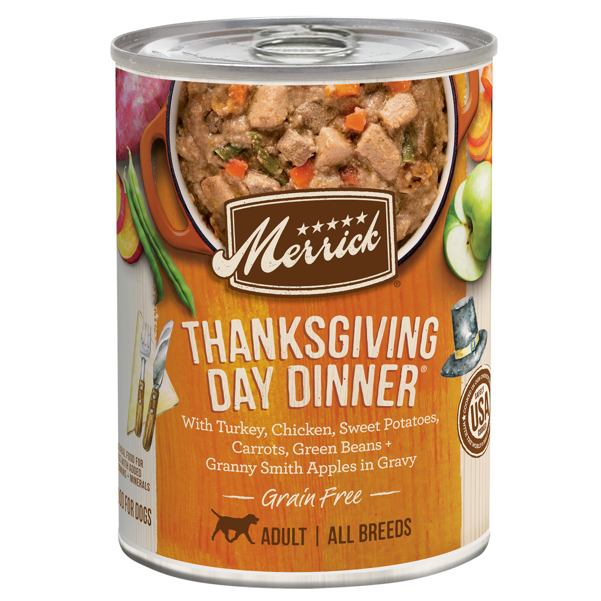 The first ingredient in Merrick Grain Free Wet Dog Food, Thanksgiving Day Dinner Canned Dog Food is real USDA-inspected deboned turkey. This dog food also contains chicken among the first five ingredi…