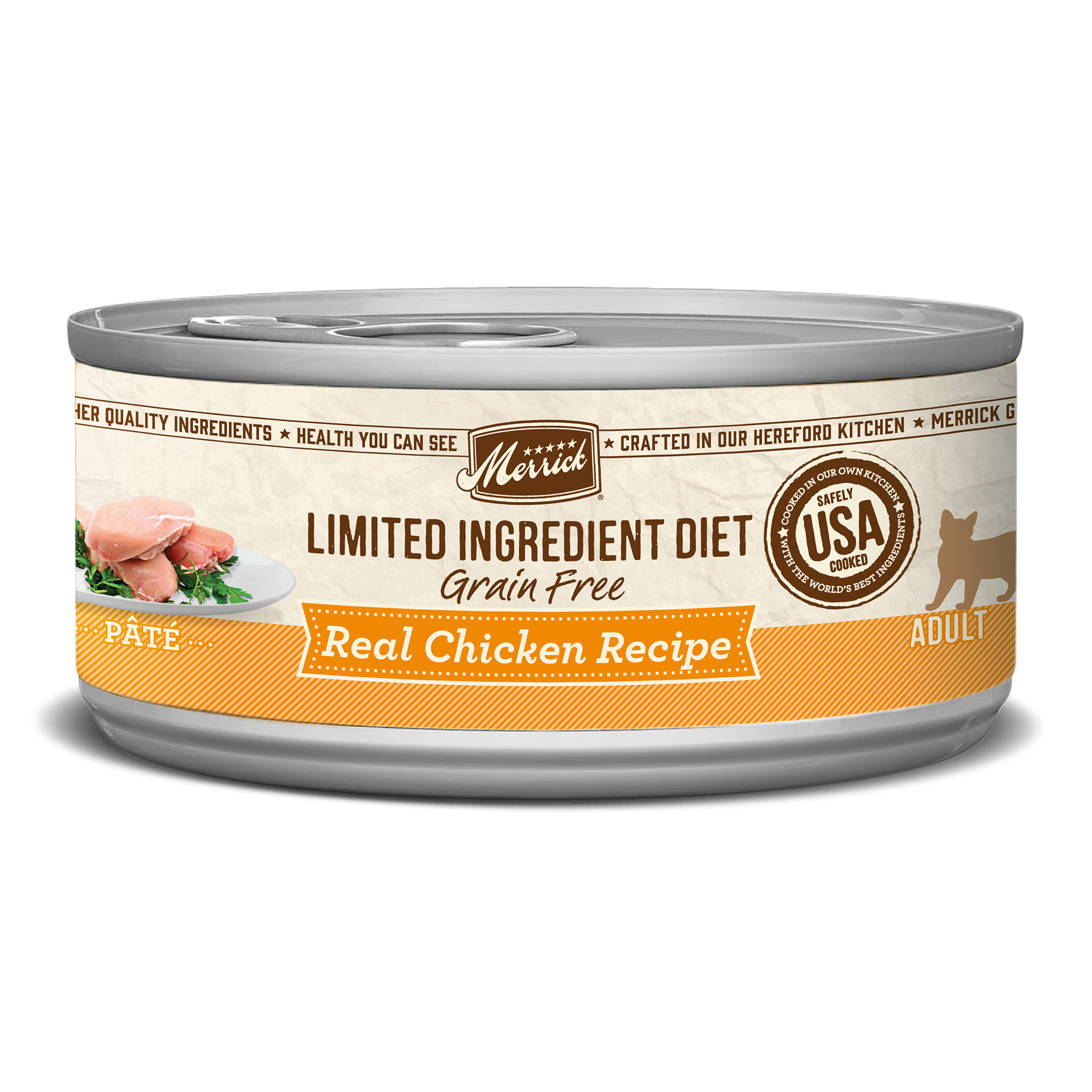 Merrick Grain Free Limited Ingredient Diet Real Chicken Pate is specially formulated, in a delicious pate, to provide complete and balanced nutrition for cats with food sensitivities and sensitive sto…