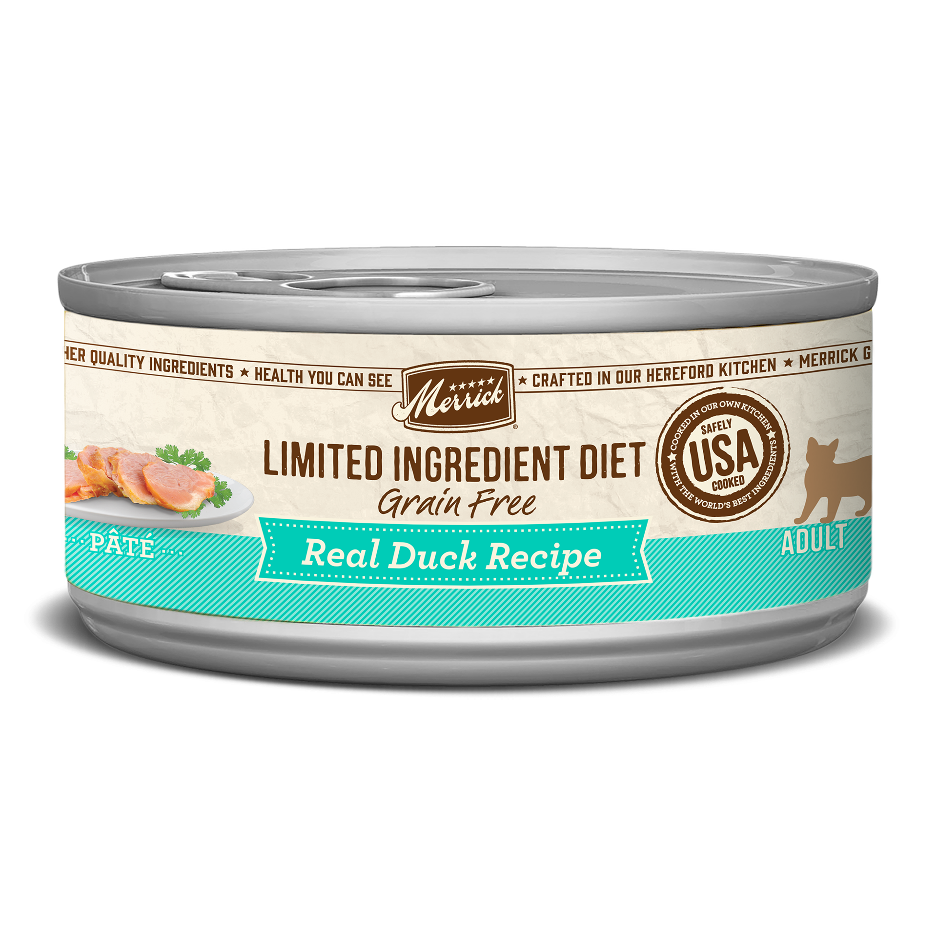 Merrick Grain Free Limited Ingredient Diet Real Duck Pate is specially formulated, in a delicious pate, to provide complete and balanced nutrition for cats with food sensitivities and sensitive stomac…