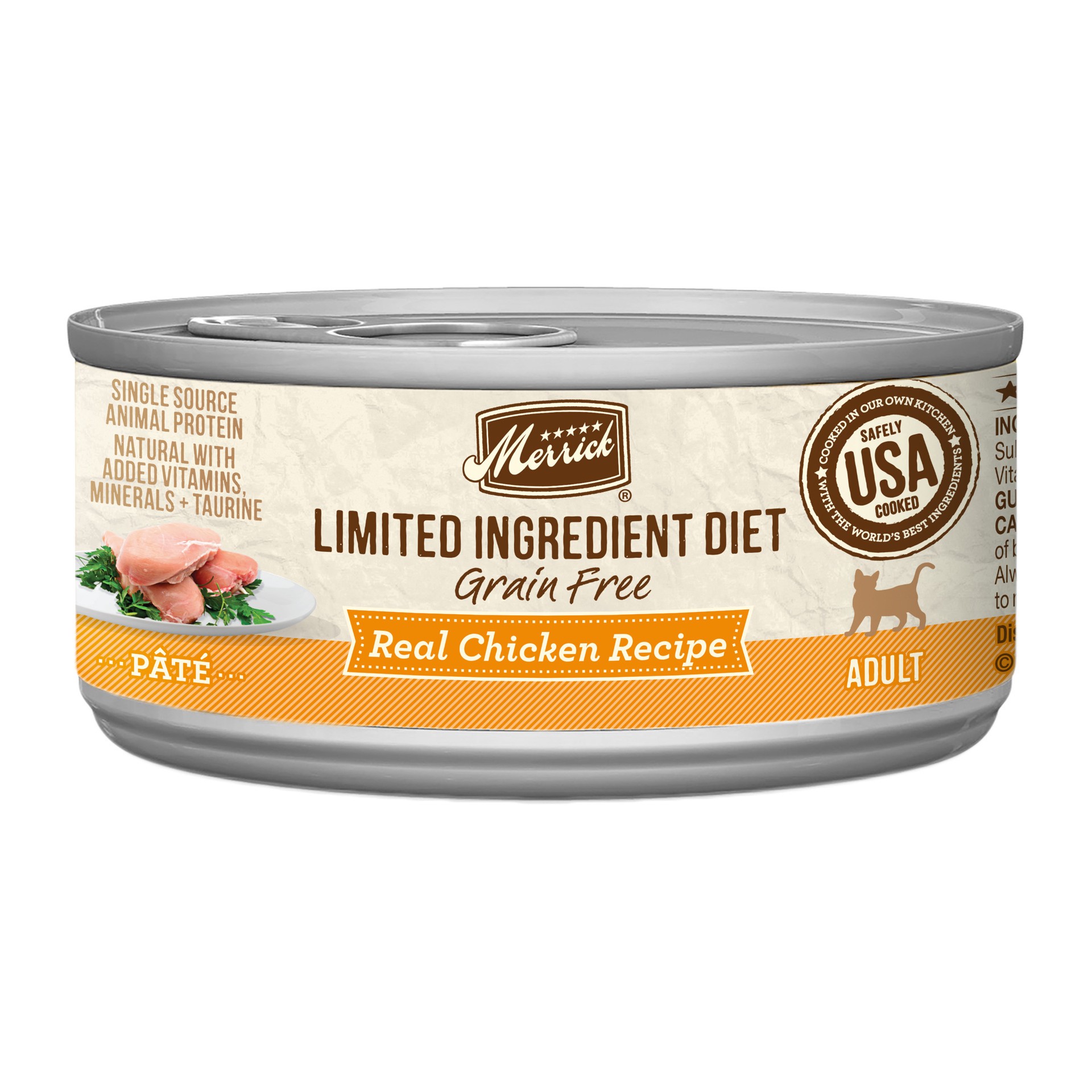 Merrick Grain Free Limited Ingredient Diet Real Chicken Pate is specially formulated, in a delicious pate, to provide complete and balanced nutrition for cats with food sensitivities and sensitive sto…