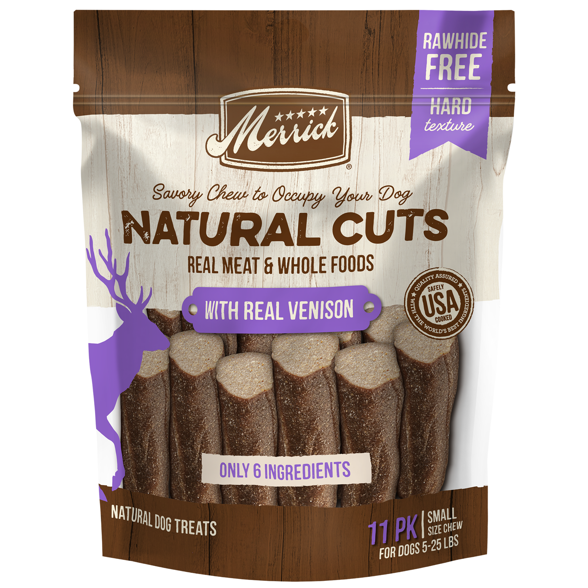 Merrick Natural Cuts Rawhide Free, Small Dog Chews with Real Venison are savory real meat dog chews designed to keep your small-sized dog occupied. These rawhide free dog chews are made with natural i…