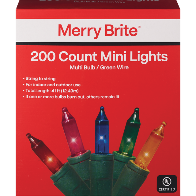 200 Lights --String to string. for indoor and outdoor use. Total length: 41 ft. (12.49m). If one or more bulbs burn out, others remain lit. Don't Forget Extension Cards!Connects at both ends. read enc…