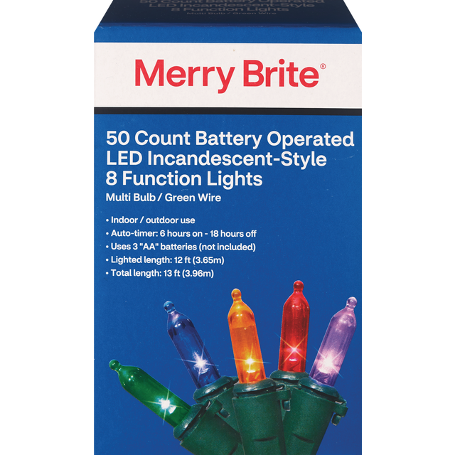 slide 4 of 4, MERRY BRITE 50 Led B/O 8 Func. 2Asst, 1 ct