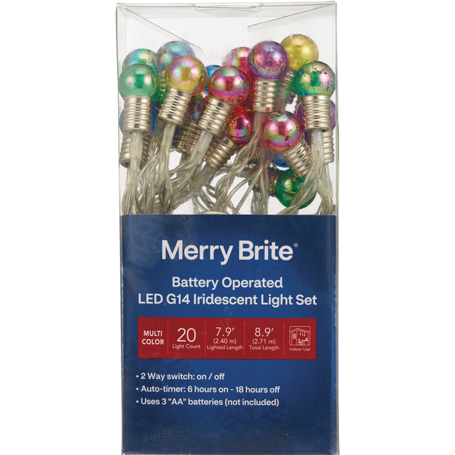 Merry Brite B/O Led Iridescent G14 Lights, Multicolor, 20 Ct
