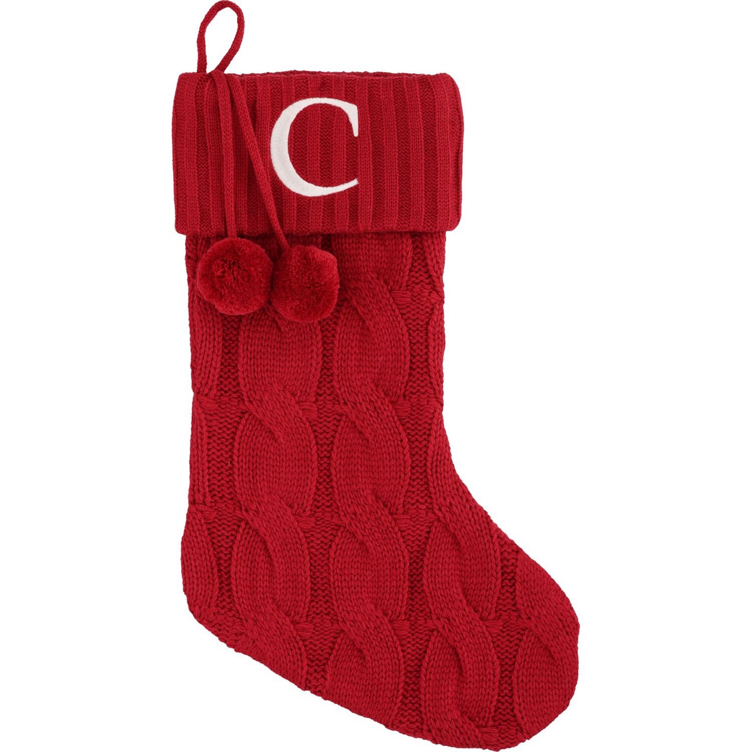 Merry Brite Cable Knit "c" Monogram Stocking, Red