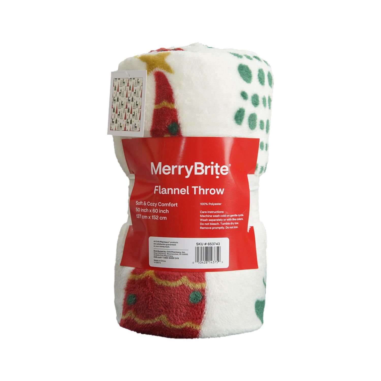 Merry Brite Flannel Throw Blanket, Reindeer & Trees, 50 X 60 In