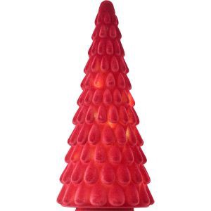 Create a play of holiday light and shadows with this hand-blown Glass Tree covered in Red Flocking. Battery Operated Handcrafted 4.6" D x 10.1" H