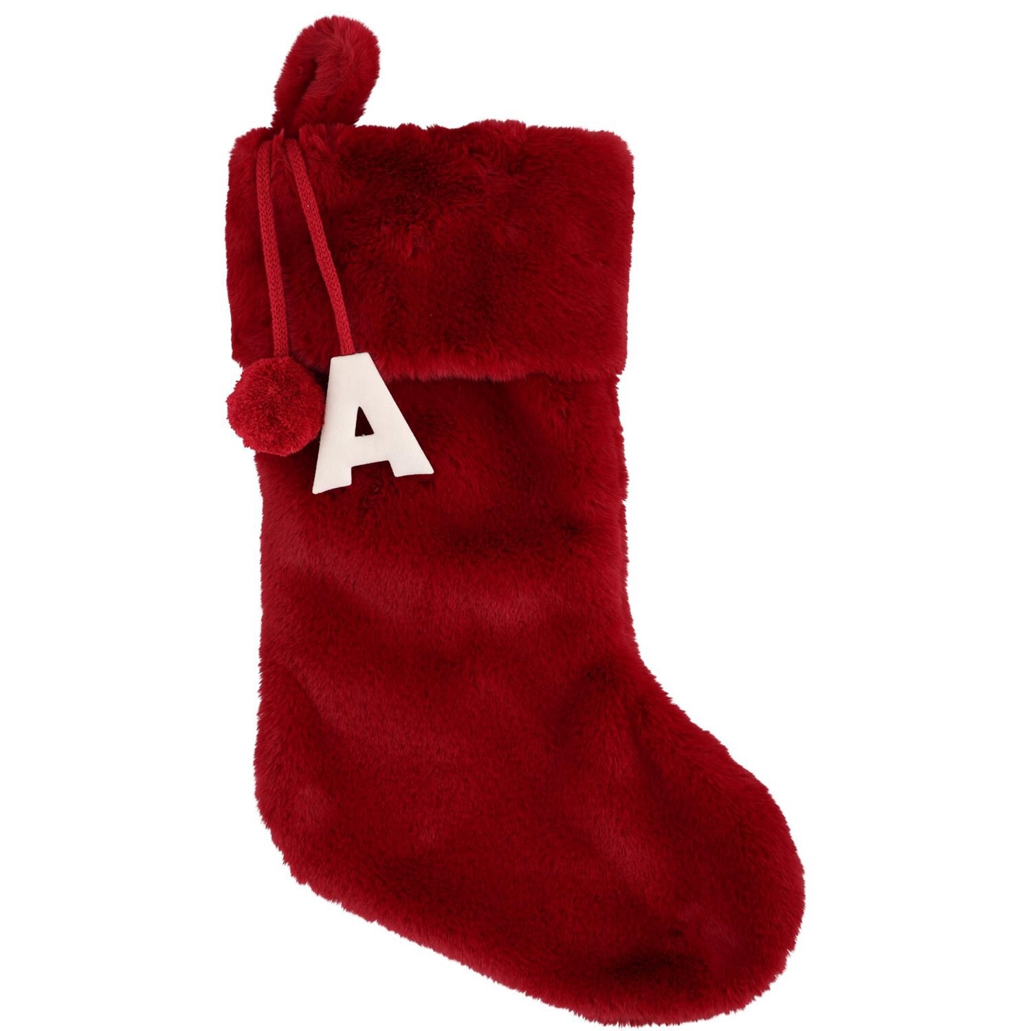 Merry Brite Plush "a" Monogram Stocking, Red, 21 In