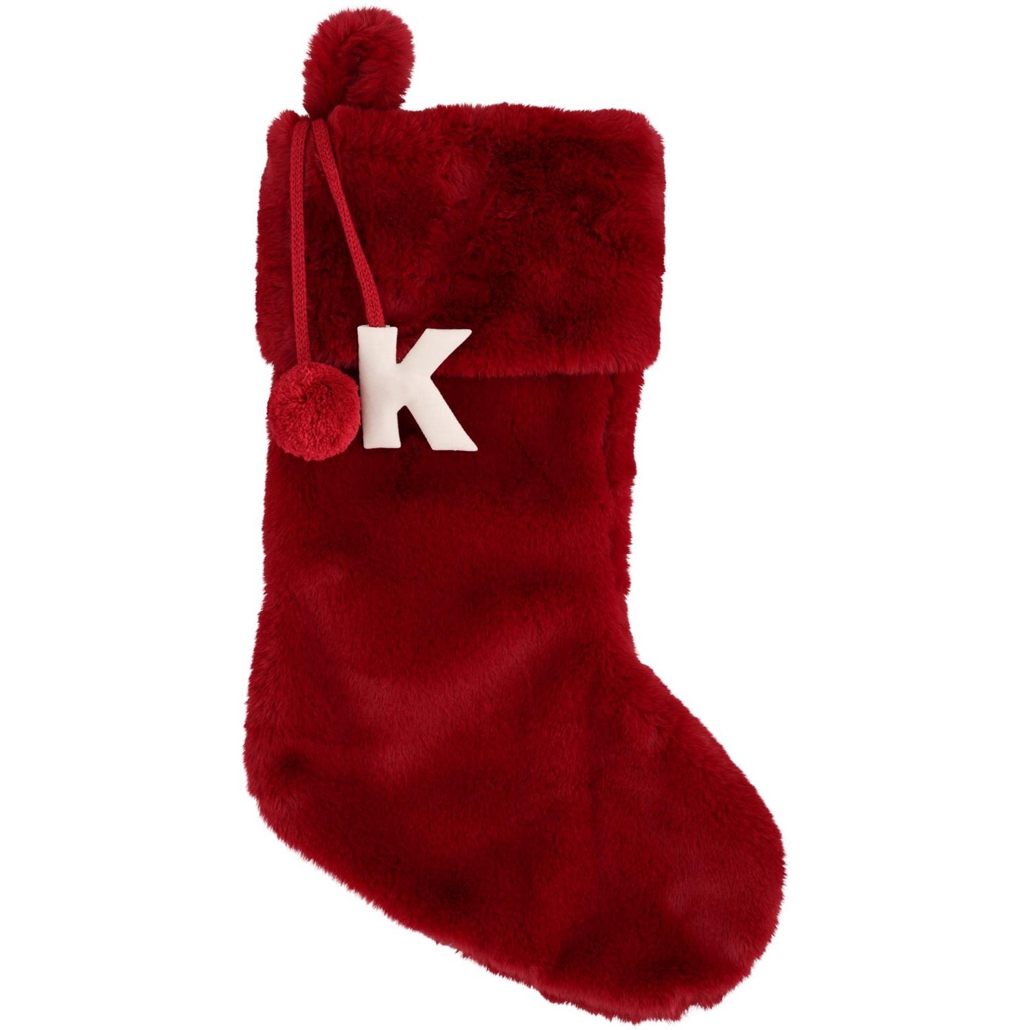 Merry Brite Plush "k" Monogram Stocking, Red, 21 In