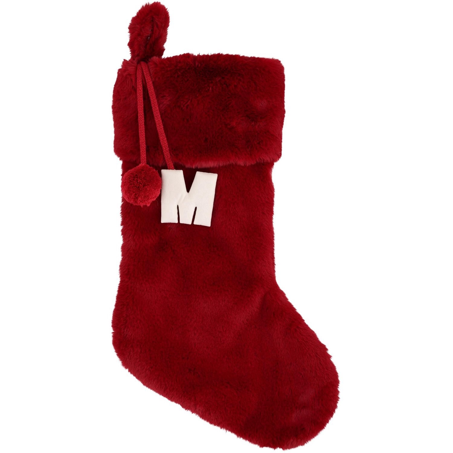 Merry Brite Plush "m" Monogram Stocking, Red, 21 In