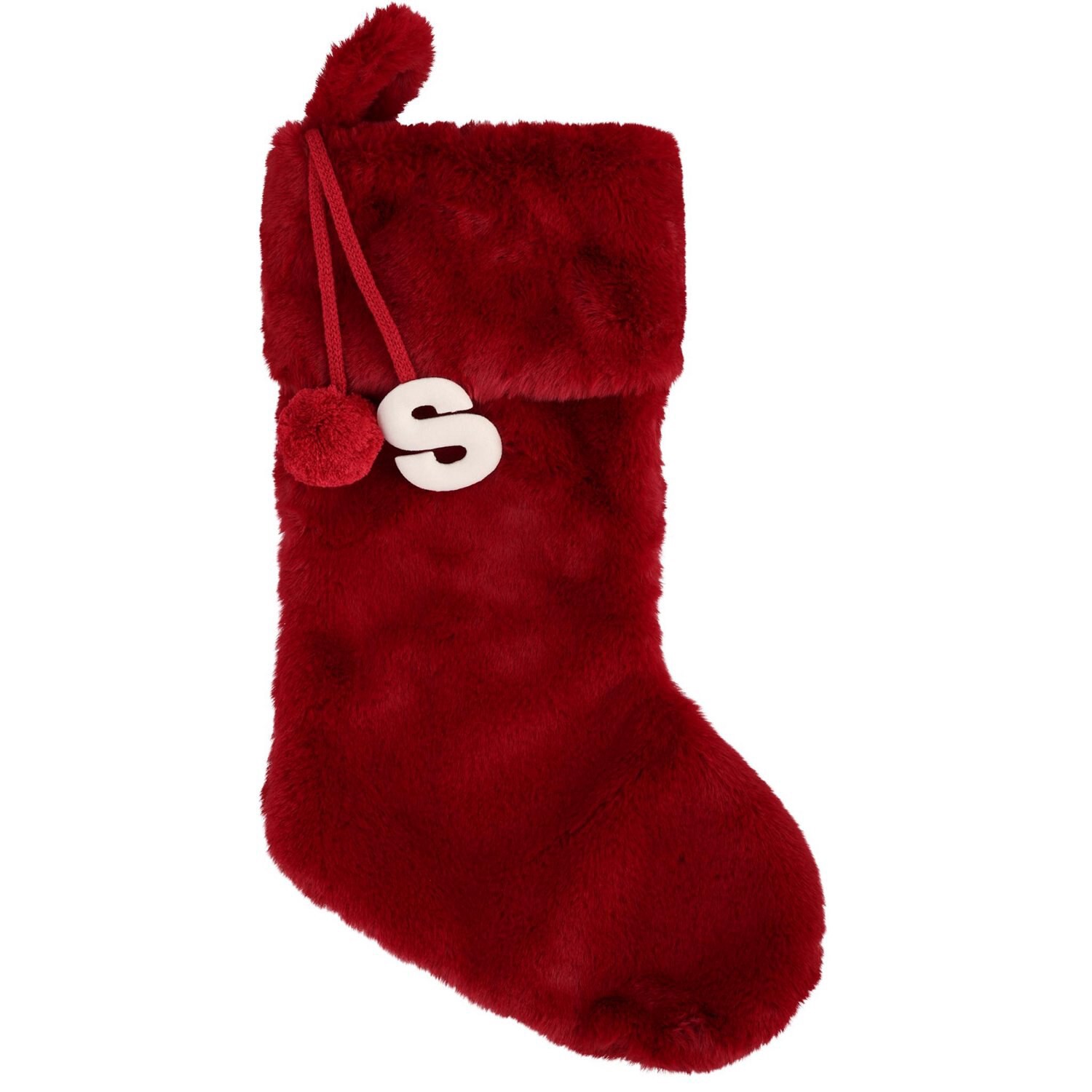 Merry Brite Plush "s" Monogram Stocking, Red, 21 In