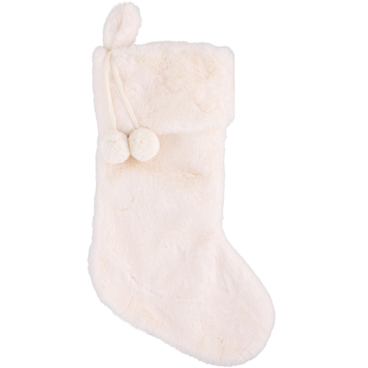 Add a touch of elegance to your holiday décor with this 21" plush cream color Christmas stocking, featuring a luxuriously soft texture, generous fold-over cuff, and playful pom-pom accents. Perfect fo…