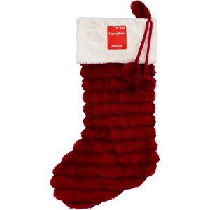 Deck the halls in festive style with our Red Plush Stocking accented by a creamy cuff. The perfect blend of holiday hues, this piece is a captivating addition to any Christmas display.