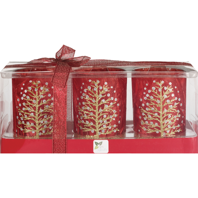 Merry Brite Set Of 3 Glass Candle Holder R/W