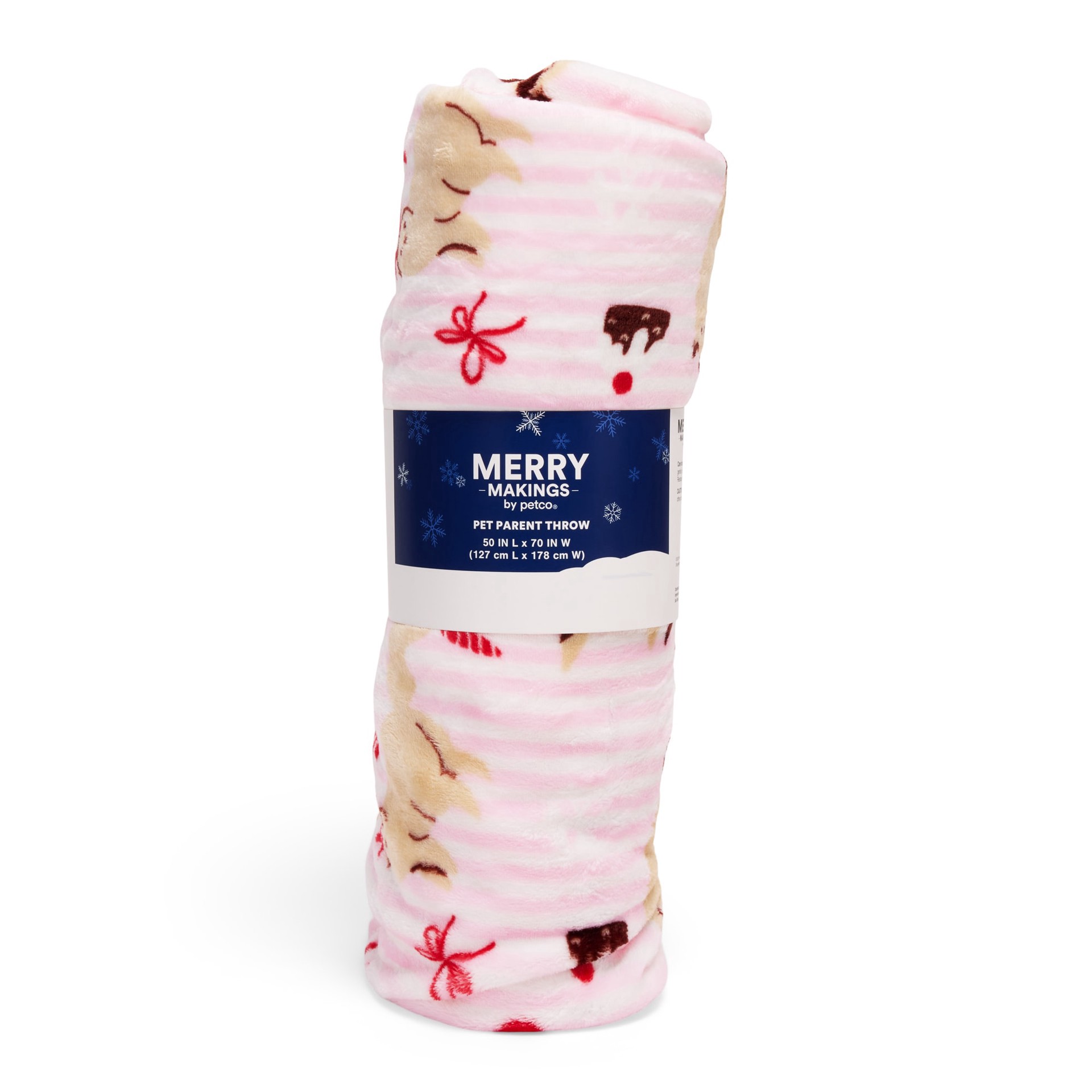 Merry Makings Pink Holiday Cat Pet Parent Throw Blanket, 50" L X 70" W