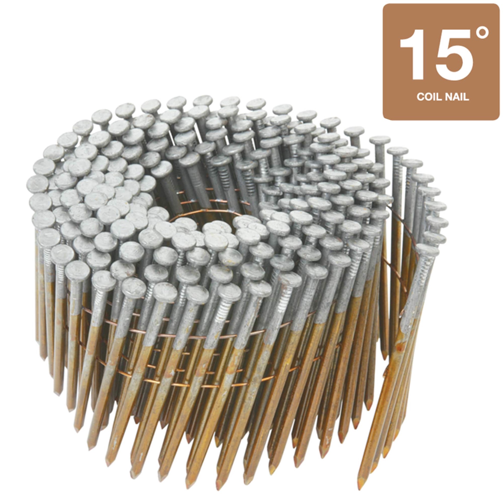 TYPE: 15 Degree Full Round Head Smooth Shank Bright Basic Wire Coil Framing Nails. APPLICATION: Suitable for rough nailing of lathing and sheathing materials and provide an abundance of holding power …