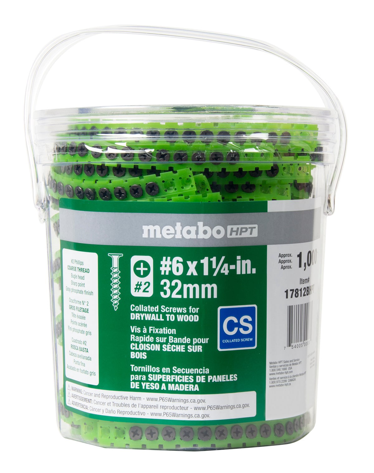 TYPE: Super Drive Plastic Collated Screws. APPLICATION: Collated Screws for Drywall to Wood. COUNT: 1,000 per bucket. LENGTH: 6 x 1-1/4 Inch. TREATMENT: Electro Galvanized, coats the nails with a laye…