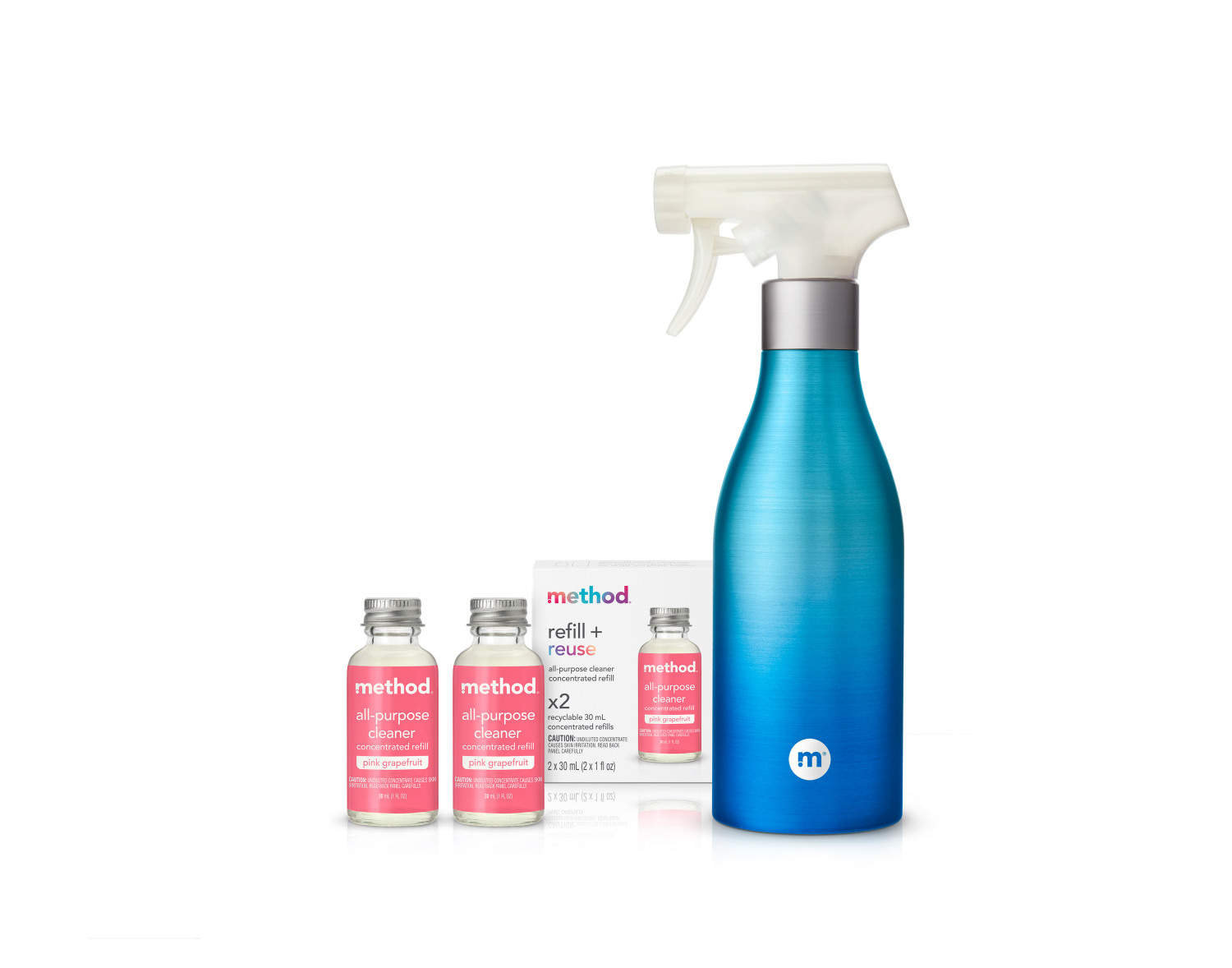 packed with plant-based cleaning power, this awesome all-purpose cleaner not only cuts through grease, grime and gunk, it cuts down on plastic waste too. this kit contains two recyclable bottles of al…