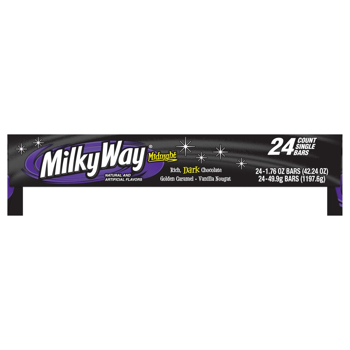 Rich, dark and oh-so-delicious! Single Size MILKY WAY Midnight Dark Chocolate Candy Bars are a tasty way to add delicious fun to everyday celebrations. Made with creamy, golden caramel and vanilla nou…