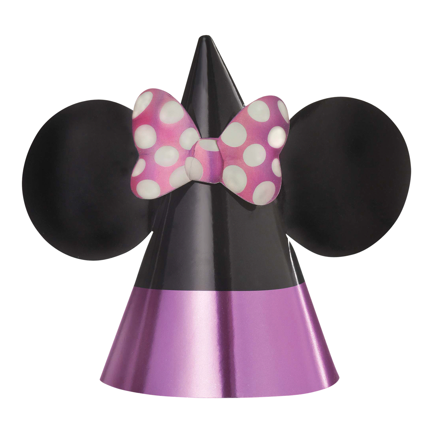Look just like Minnie with this shiny party hat Each hat features a black and bright pink color block cone with black ears that fold out. Also contains a pink and white polka dot bow attachment that m…