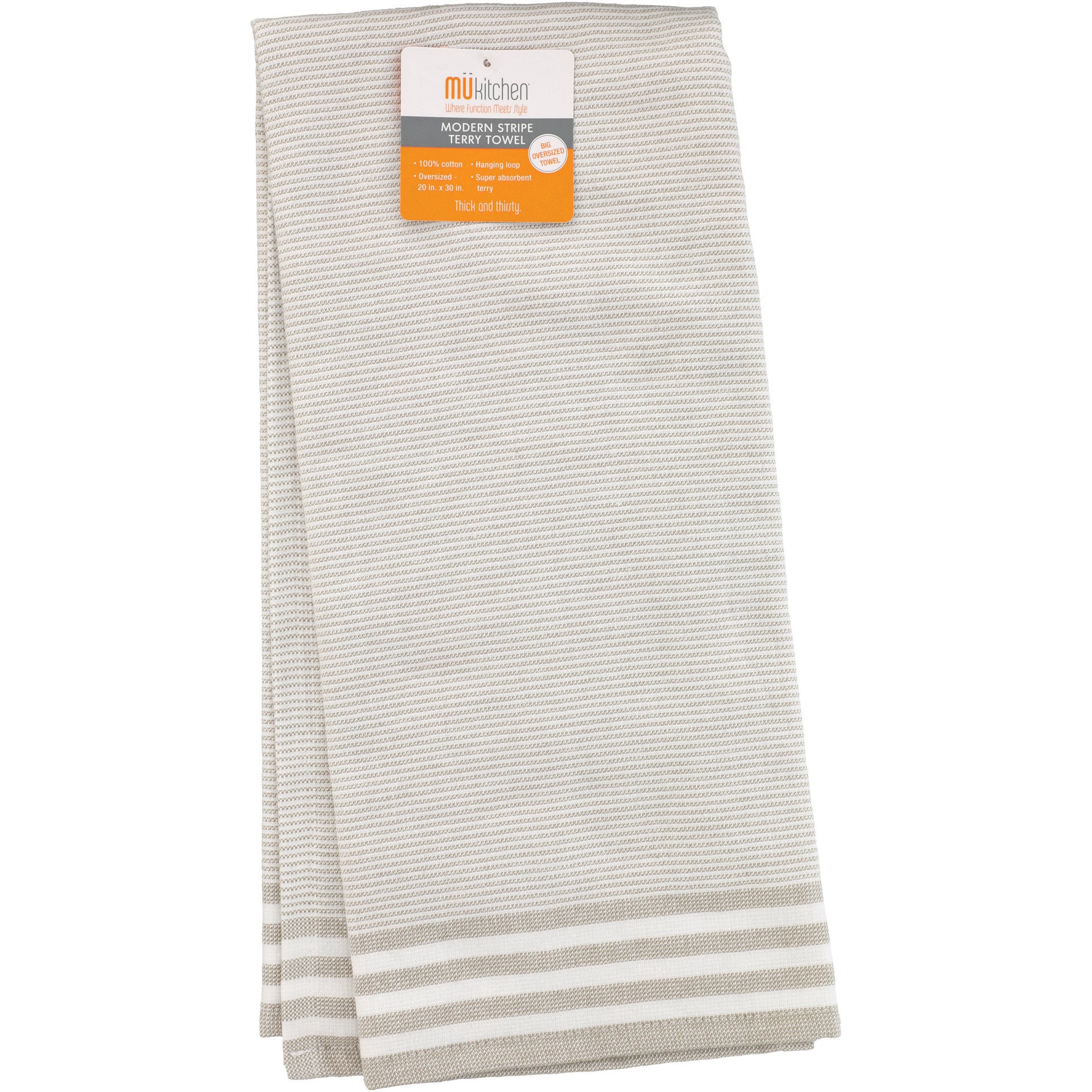 slide 1 of 1, MÜkitchen Terry Kitchen Towel - Stripe Khaki, 20 ft x 30 ft