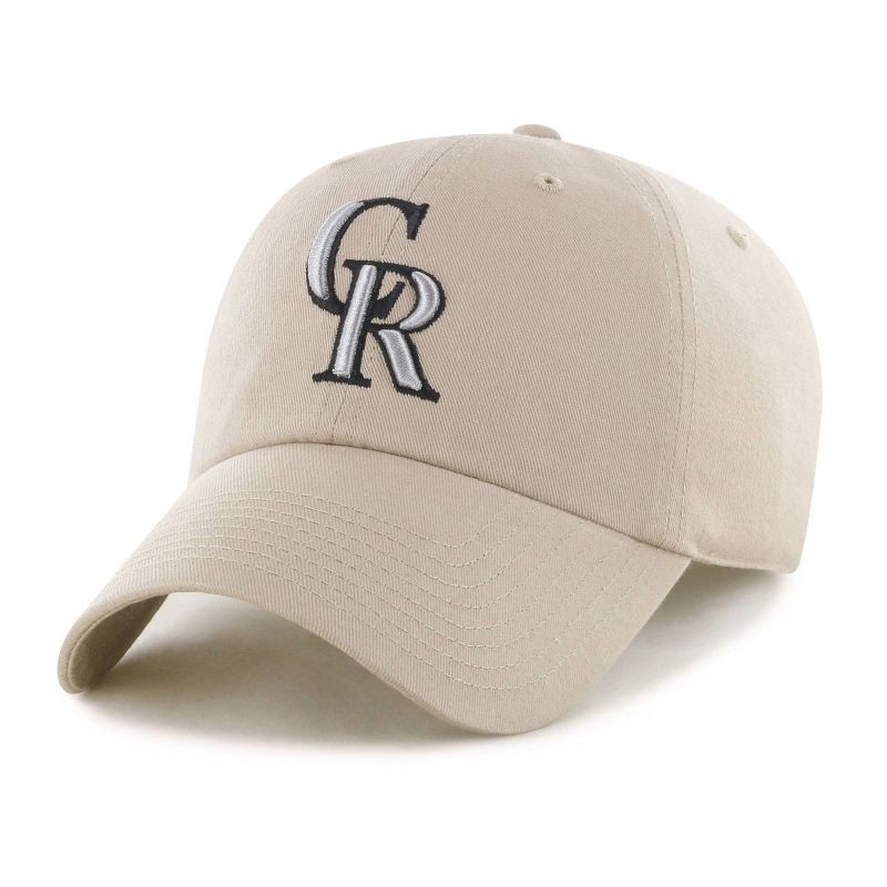 MLB Colorado Rockies Khaki Clean Up Hat: Adjustable Cotton Baseball Cap