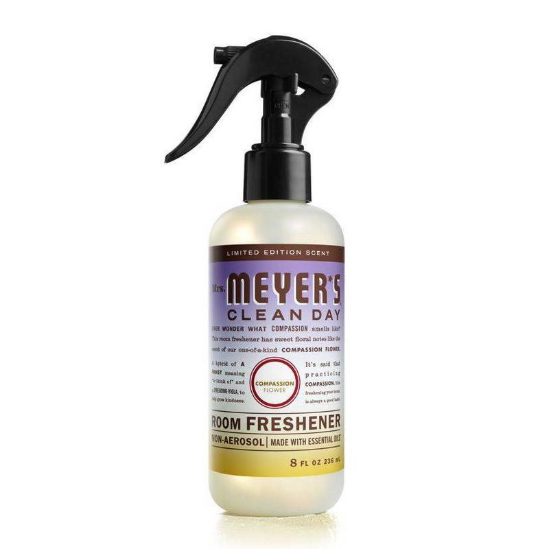 - Mrs. Meyer's Clean Day Compassion Flower air freshener spray is made with essential oils and other thoughtfully chosen ingredients, and gives your home instant freshening between cleaning days.