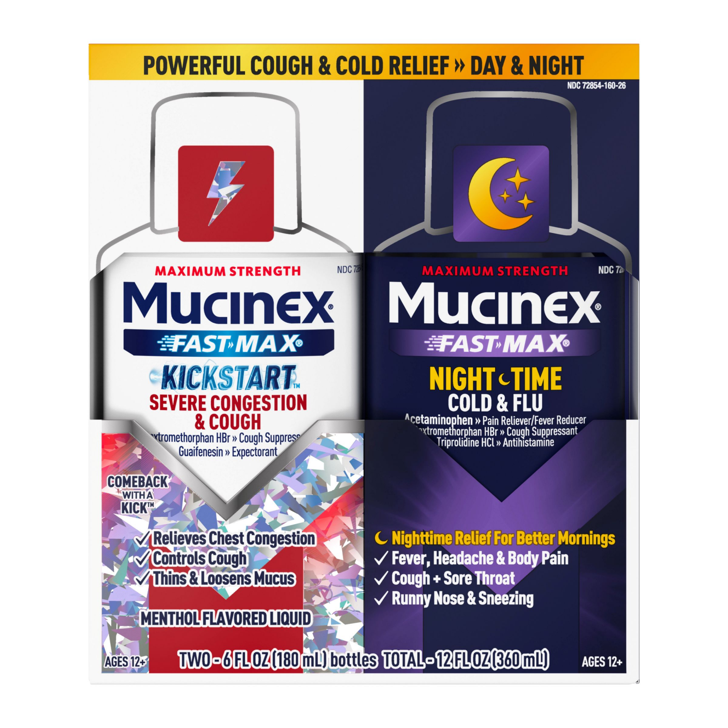 MUCINEX Fast-Max Kickstart Severe Congestion & Cough and Nighttime Cold & Flu, 2 x 6 oz