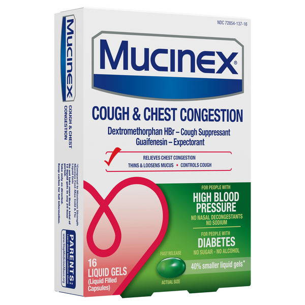 In each liquid gel Active Ingredients: Dextromethorphan HBr (10 mg), Cough Suppressant.; Guaifenesin (200 mg), Expectorant. Inactive Ingredients: D&C Yellow No. 10, FD&C Blue No. 1, Gelatin, Glycerin,…