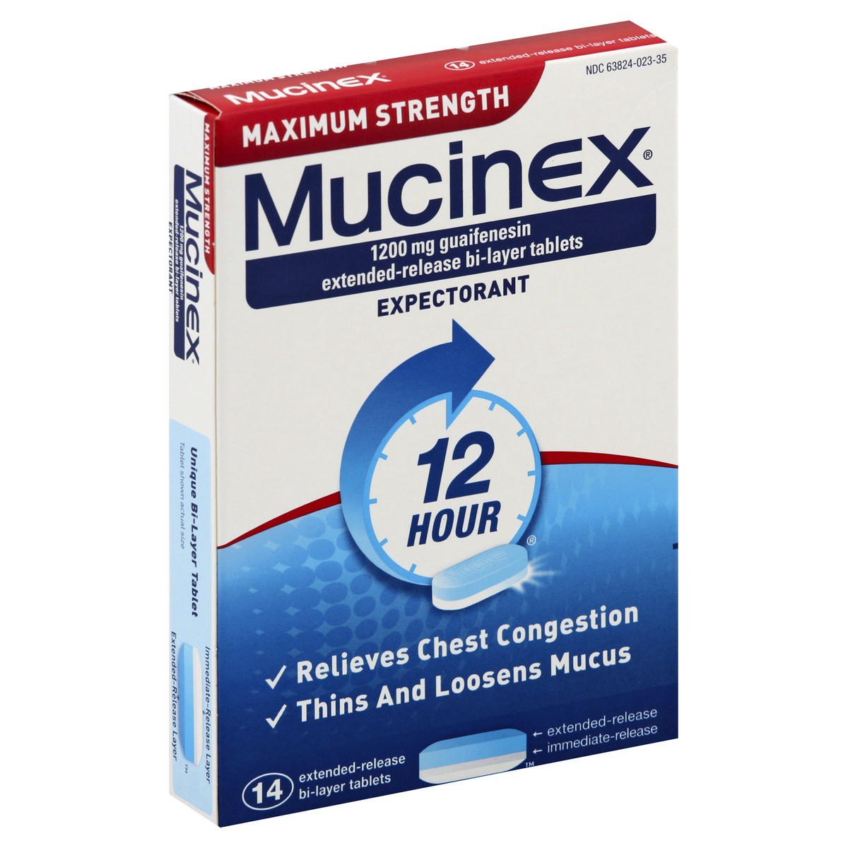 (In each extended-release bi-layer tablet) Active Ingredients: Guaifenesin (1200 mg), Expectorant. Inactive Ingredients: Carbomer Homopolymer Type B, FD&C Blue 1 Aluminum Lake, Hypromellose, USP, Magn…