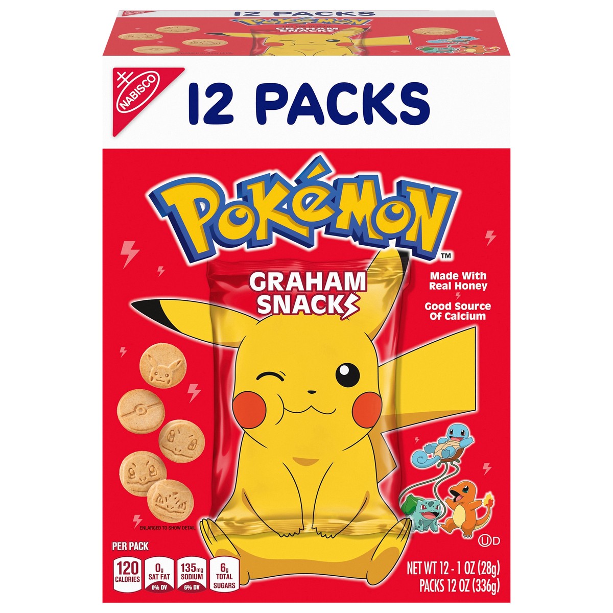 Nabisco Pokemon Graham Snacks, Graham Cracker Snack Cookies, 12 Snack Packs