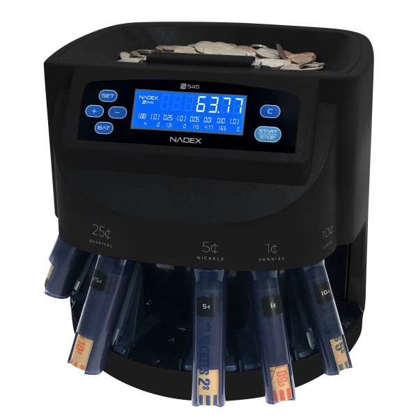 Nadex S545 Coin Counter, Sorter And Wrapper, 10""H X 10""W X 9""D, Black