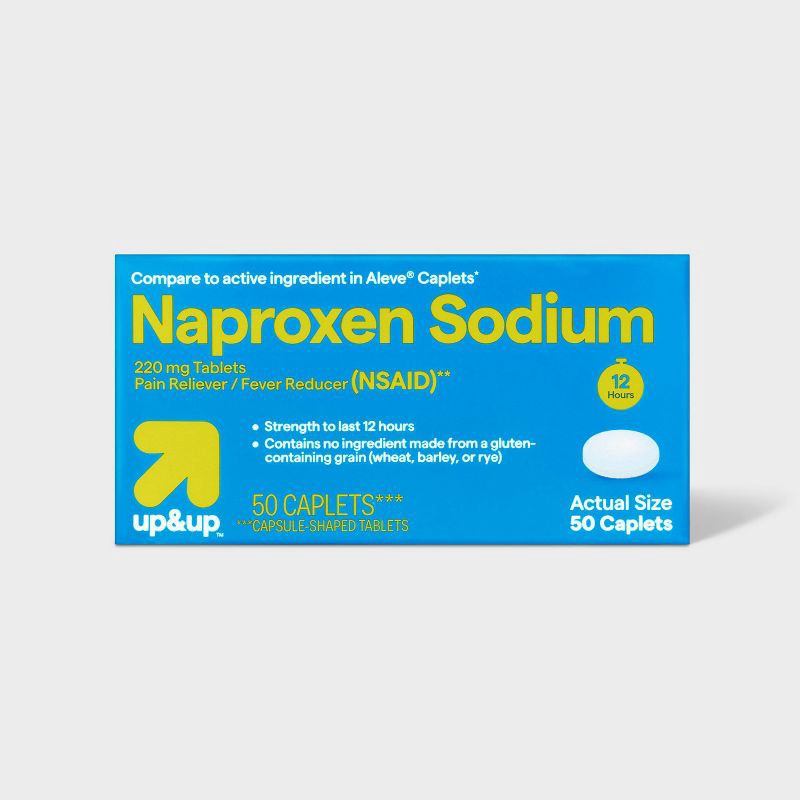 Compare to Aleve Caplets active ingredient. When minor aches and pains hold you back, try an all-day pain reliever like Up&Up Naproxen Sodium Tablets, 220 mg. This pain reliever and fever reducer is a…
