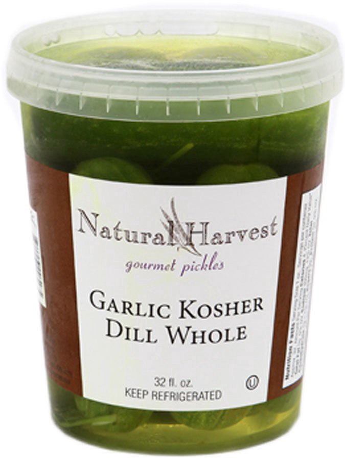 GARLIC KOSHER DILL WHOLE: A favorite among pickle connoisseurs, these are whole fresh cucumbers cured into full flavored classic dill pickles with hints of garlic. Natural Harvest’s gourmet brine of p…