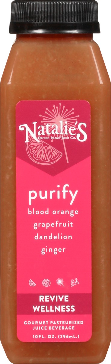 Blood Orange Juice, Grapefruit Juice, Dandelion Extract, Organic Ginger Puree.