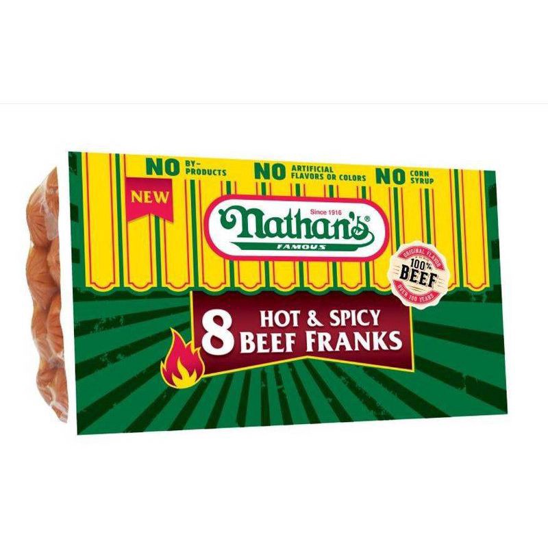 slide 2 of 5, Nathan's Famous Nathan's Hot & Spicy Beef Franks 12 oz, 8 ct