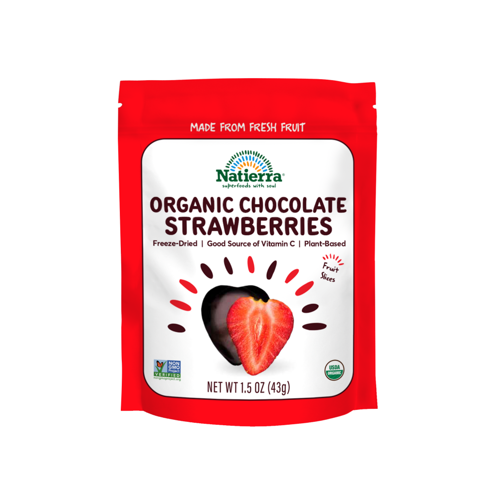 Ingredients: Organic Strawberries, Organic Dark Chocolate (Organic Sugar, Organic Cacao Mass, Organic Cacao Butter And Organic Soy Lecithin).