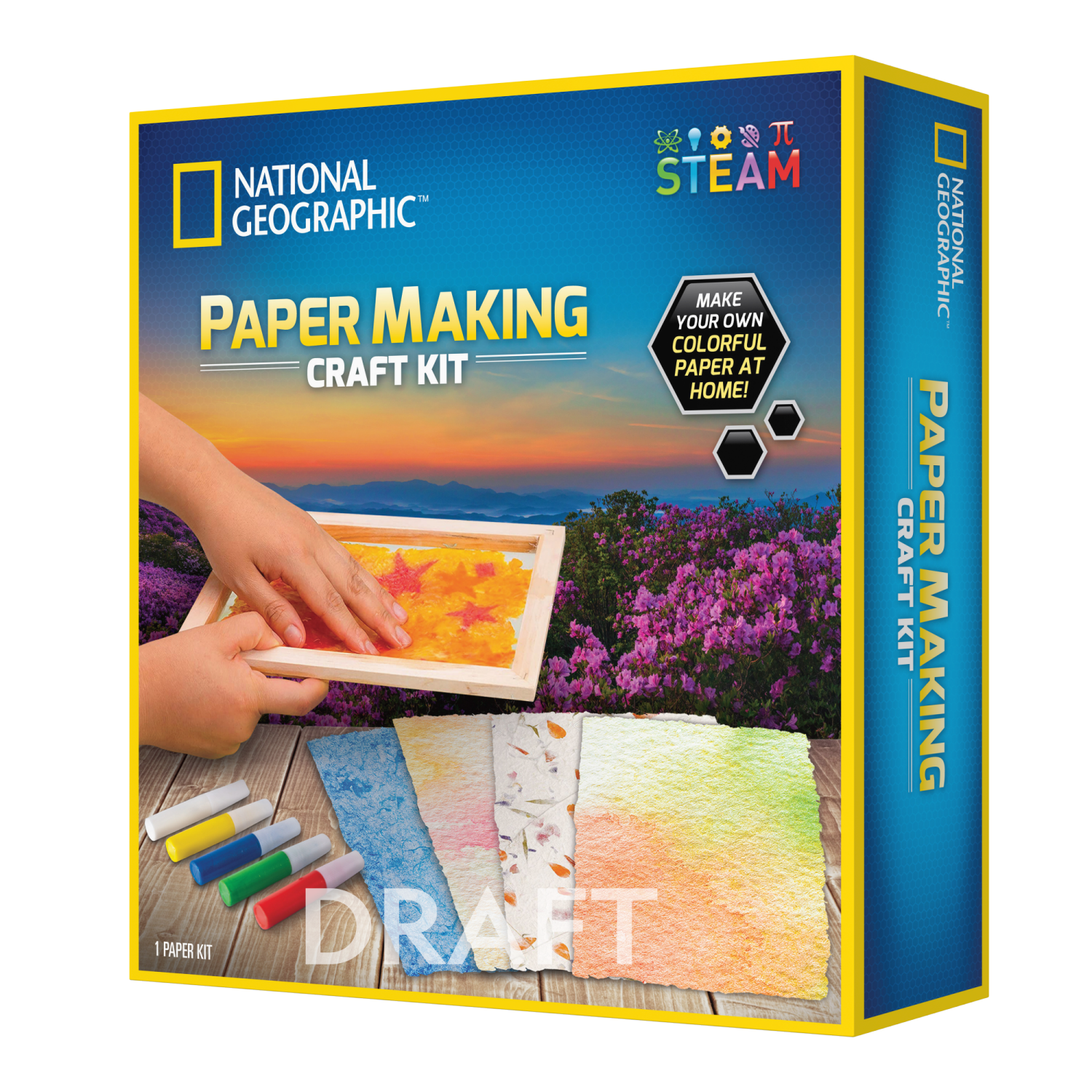 The National Geographic Paper Making Craft Kit includes everything kids need to make up to 10 sheets of paper in a variety of colorsThe kit contains all the tools kids need to get started, including 5…